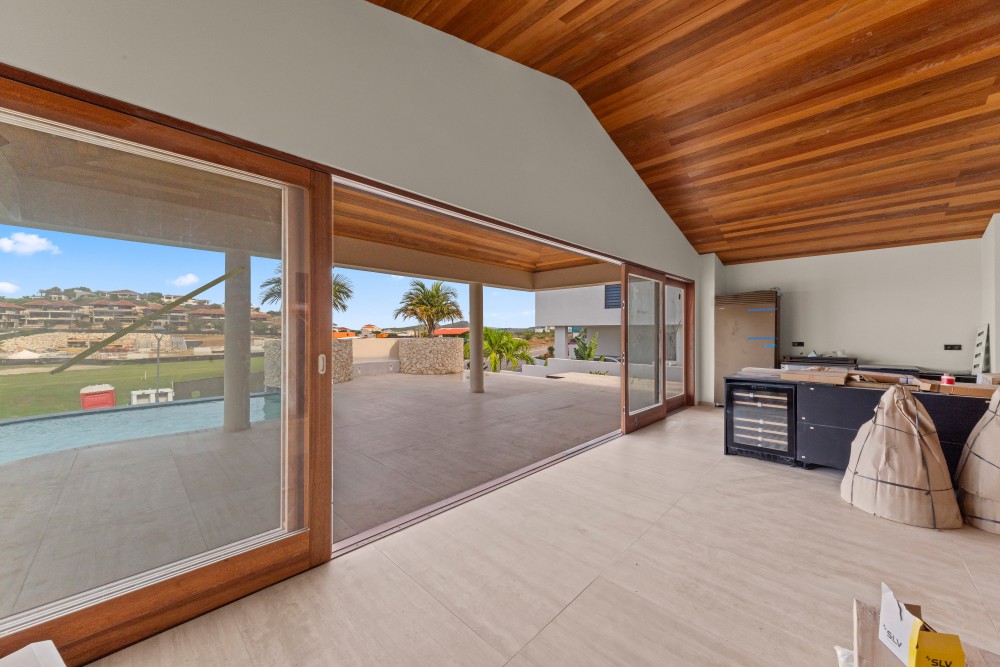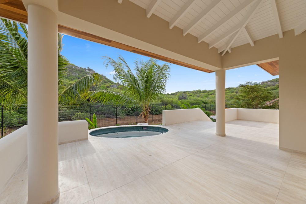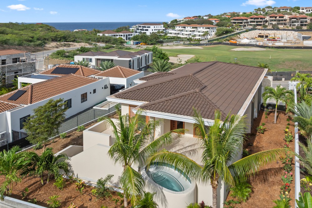 This newly built villa on the newly developed W-section of the Blue Bay Golf & Beach Resort Curacao is created by renowned designer Osiris Hertman, in collaboration with architect Henk Bolivar. Hertman as a well known designer creates houses all over the world, known in Curacao for the Shore, the Ridge, Brass Boer and The Lotus.Due to the elevated lots, there is an unobstructed view from both the large terrace and the smaller terrace at the rear of the house. The villa features high-quality finishes and is built with natural, sustainable materials. Enjoy a dinner with friends or family while watching the most beautiful sunset on the ocean side of the villa. If you want to relax in complete privacy and enjoy full freedom, there is a terrace at the back of the villa with a jacuzzi, offering a view of the resort’s most beautiful green mountain. Enjoy the sounds of the thousands of different birds that call this place home. This stunning villa has a number of impressive features that make it a unique property. It offers four spacious bedrooms and four and a half bathrooms, with the master bedroom featuring an exclusive Cone Series JEE-O world design by Osiris Hertman. The interior is of the highest quality, with a natural stone kitchen and top-of-the-line built-in appliances, including a Fhiaba refrigerator and freezer drawer. The bathroom fixtures are from the prestigious JEE-O world brand, ensuring perfect finishing. The villa also boasts a swimming pool, jacuzzi whirlpool, and two covered terraces, ideal for outdoor entertainment. The property has a separate entrance leading to the guest accommodations and offers a beautifully landscaped garden. Additionally, the villa is equipped with solar panels, contributing to its sustainability. The design of this villa was created in collaboration between renowned designer Osiris Hertman and architect Henk Bolivar. They are both famous for their work worldwide, including projects such as The Shore, The Ridge, the Brass Boer restaurant, and the new villa park The Lotus. Investment opportunity or purchase of this villa at Blue Bay Curacao W-section 07. The villa at W-section gives you the opportunity to generate additional income through short stay vacation rentals. When you are not staying in the villa, the property can be rented out. The rental will be managed by an external party. If you are interested, contact Nick today for more information about this property!