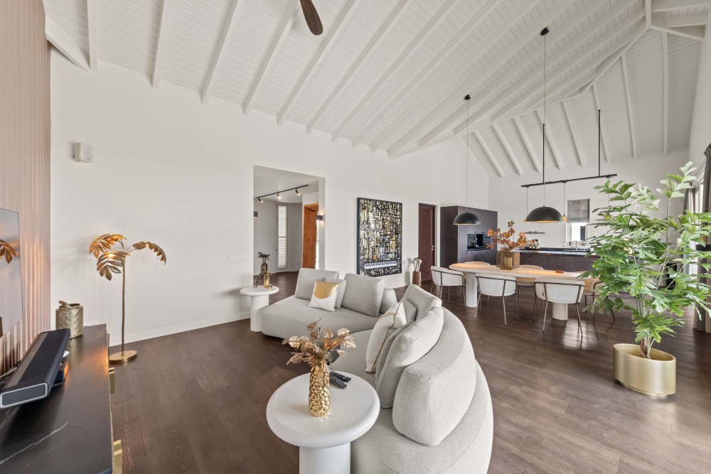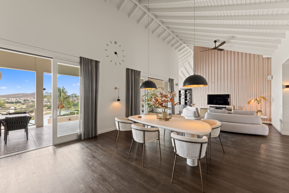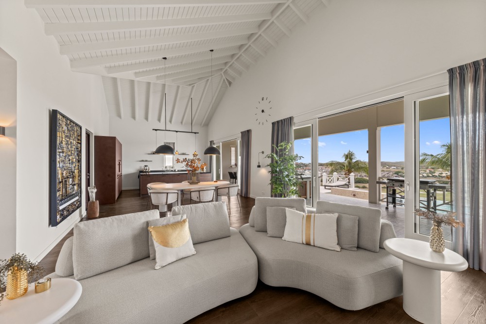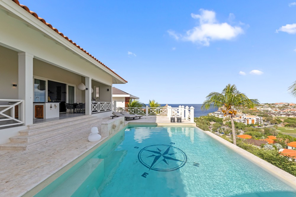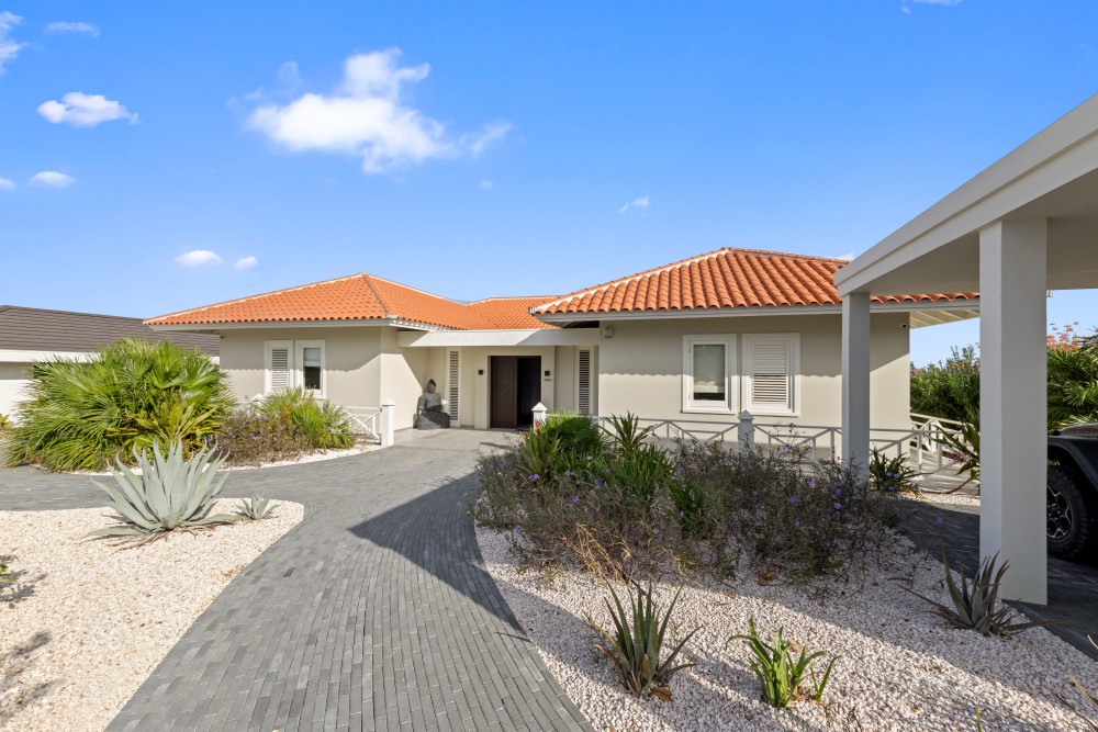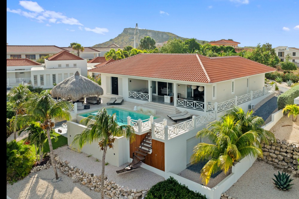 Situated on one of the most coveted lots in the prestigious T-section of Blue Bay Golf & Beach Resort Curaçao, this exceptional villa blends high-quality design with generous living spaces and sweeping vistas of the Caribbean Sea, the golf course, and the resort. Its windward position ensures a pleasant indoor climate, abundant natural light, and unforgettable sunsets.Entrance & LivingArrive via a spacious, covered carport (for two large cars) and an elegantly paved brick (waaltjes) walkway to a stately entrance with double front doors. The reception hall exudes grandeur and provides access to a guest powder room finished with tasteful, elegant details.The living area is defined by high ceilings, expansive windows, and a true panoramic outlook. The custom kitchen with island features premium built-in appliances, including a Quooker for instant boiling water. Adjacent is a generous pantry/laundry with additional cabinetry, worktop, washing machine, dryer, and an American-style refrigerator with ice and water dispenser.The elegant dining area seats six and flows into a sophisticated lounge with two-piece sofas designed for effortless relaxation. A premium Sonos Amp paired with tropical-climate-resistant Power Dynamics speakers delivers rich, immersive sound throughout the villa and terrace. Just off the living room, a private study offers captivating views across the resort.Outdoor LivingSliding doors open to a spacious, covered porch with dining for eight and a comfortable lounge set. The fully equipped outdoor kitchen includes a sink, gas warming plate, and teppanyaki grill, ideal for relaxed entertaining.The expansive infinity pool showcases a spectacular outlook and is fitted with a JetStream counter-current system for lap training, a waterfall, and a salt-electrolysis system for soft-feel, non-chlorine water. A heat pump allows the pool to be heated or cooled as desired.The large palapa provides a beautifully shaded lounge with elegant, modular seating, an inviting space to unwind while savoring the cooling trade winds and a view that surpasses even the finest photographs.BedroomsTo the left of the entrance, a spacious guest bedroom features its own bathroom. To the right, the primary suite, accessed via a private corridor for maximum privacy, offers a luxurious designer bathroom with double rain shower, a large air-conditioned walk-in closet with custom fittings, and direct access to the terrace.All bedrooms are equipped with energy-efficient inverter air conditioning.Lower Level (Souterrain)A staircase from the hall leads to the lower level with an additional bedroom, a spacious garage (with electric door, suitable for a golf cart or jet ski), storage, and a self-contained guest apartment with its own entrance, living room, kitchen, bedroom, bathroom, and terrace with views.A detailed key plan ensures guests can access only their own quarters—ideal for rentals or extended stays. Positioned between the hall and garage, a versatile intermediate room can function as a home gym, creative studio, or discreet storage space.Energy & Technology33 solar panels with battery system, designed for full energy independence (including air conditioning at night)Greywater system for sustainable garden irrigationAdvanced LED lighting for ambient and task illuminationInverter A/C units in all bedrooms for energy-efficient coolingSecurity system with discreet cameras, connectable to a monitoring centerFull Wi-Fi coverage indoors and outdoorsFurnishingsOffered nearly fully furnished, with only a few personal items retained, the villa showcases high-end, climate-resistant furnishings and carefully selected art pieces, most newly acquired in 2024. Every element reflects comfort and quality, ensuring a truly move-in-ready experience from day one.HighlightsPrime location in Blue Bay’s prestigious T-sectionPanoramic sea, golf course, and resort viewsInfinity pool with JetStream, waterfall, and heat pumpSelf-contained guest apartment with terraceSustainable energy supply with 33 solar panels and battery storageSmart lighting, air-conditioning, and security systemLuxurious finishes; nearly fully furnished and move-in-readyViewingThe unique ambience, panoramic views, and exceptional comfort of this villa must be experienced in person. Please contact the listing agent: