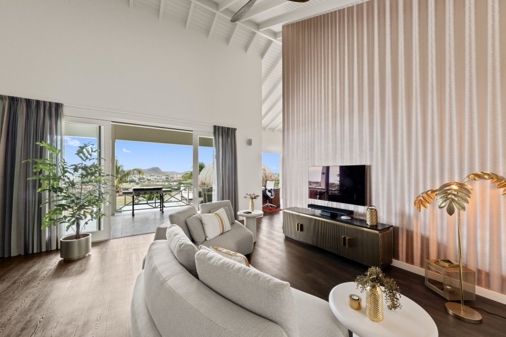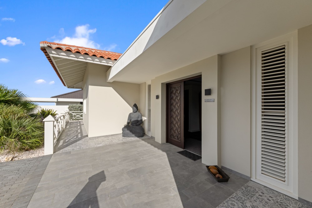 Positioned on one of the best lots within Blue Bay’s sought-after T-section, this villa enjoys prime orientation, excellent breezes, and uninterrupted vistas.From the spacious carport, suitable for two large cars, a paved walkway leads you to the stately entrance. Through the double front doors, you are welcomed into the grand foyer, immediately drawn to the villa’s panoramic views and impressive scale.The open-plan living area features high ceilings, expansive windows, and a modern kitchen with a large island, fully equipped with premium built-in appliances including a Quooker for instant boiling water. A connected pantry/laundry room offers additional storage, washer and dryer, American fridge with ice maker, and extra workspace.The dining area and lounge invite both relaxation and entertainment. A built-in Sonos sound system with weatherproof speakers ensures seamless enjoyment indoors and out. A dedicated office space next to the living room provides the perfect spot to work while enjoying the view.Large sliding doors create a smooth transition to the covered terrace, complete with a second dining set, lounge area, and an outdoor kitchen with teppanyaki grill. The infinity pool features a JetStream for endless swimming, a waterfall feature, saltwater electrolysis system, and an optional heating/cooling pump.A palapa offers additional lounge space with spectacular views that truly must be experienced in person.The master suite provides a 5-star hotel experience with a private hallway, luxurious bathroom with double shower, a spacious walk-in closet, and direct access to the terrace. Two additional bedrooms and bathrooms are conveniently located on the main floor.On the lower level you’ll find a self-contained guest apartment with private entrance, living room, kitchen, bedroom, and bathroom—ideal for visitors or rental opportunities. A large garage, storage room, and a versatile bonus space suitable for a gym or hobby room complete this level.The villa comes fully furnished with high-quality pieces and artwork, carefully selected in 2024 and suitable for Curaçao’s climate.Additional features include:33 solar panels with battery storage, providing full energy autonomyGreywater system for garden irrigationSmart lighting and inverter A/C units throughoutSecurity system with cameras and alarm, connected to a monitoring serviceFull WiFi coverage inside and outsideThis is truly a one-of-a-kind property where luxury, comfort, and sustainability meet.Interested in experiencing Blue Bay BT-41? Contact the listing agent