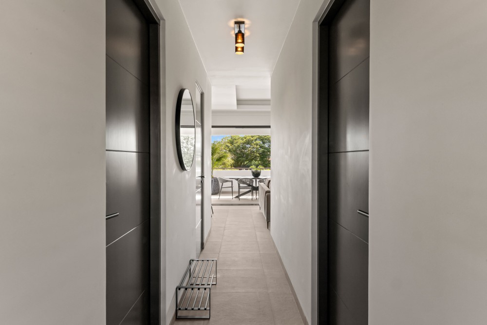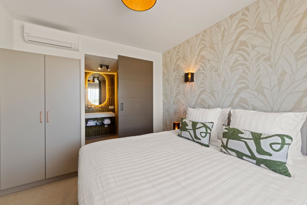Living Room & KitchenThis stylish apartment features a bright living area that seamlessly flows into the modern, air-conditioned kitchen. The kitchen comes fully equipped with all essential appliances and includes an extra storage room for added convenience. Large sliding doors open onto the covered veranda, offering beautiful views of the tropical gardens.Note: This property is delivered unfurnished.BedroomsBoth bedrooms are generously sized, air-conditioned, and equipped with private en-suite bathrooms. The rooms offer a peaceful ambiance with ample space for wardrobes and storage.BathroomsThe en-suite bathrooms are finished to a high standard, featuring walk-in showers, hanging toilets, and modern sinks—designed for ultimate comfort and a luxurious feel.Outdoor LivingSituated on the first floor, the apartment provides direct access to the beautifully landscaped gardens of the resort. The spacious porch is perfect for relaxing outdoors while enjoying serene surroundings.