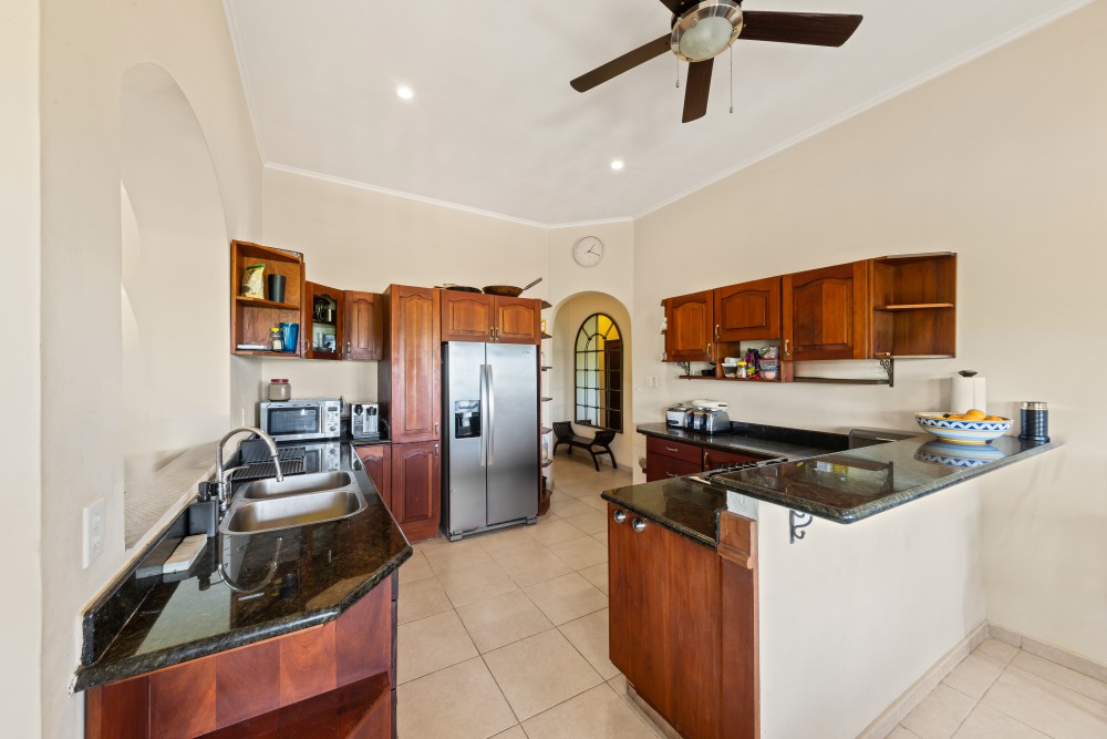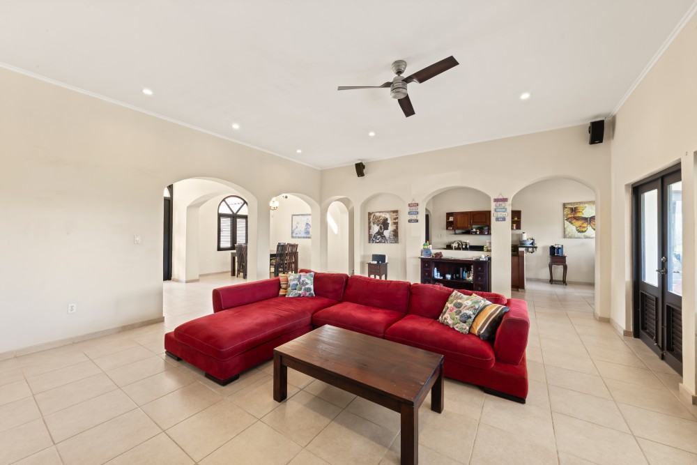 Upon arrival, this impressive villa immediately makes a strong first impression with its elegant Mediterranean architecture, warm earth tones, characteristic roof tiles, and graceful archways. The spacious driveway with ample parking and a covered garage highlights the property’s comfortable and high-quality character. Due to the natural slope of the plot, the villa is divided over two levels, with the upper floor forming the main living level and being accessible at street level. This thoughtful layout combines optimal living comfort with functionality and privacy.The lower-level features two spacious, fully furnished apartments. In addition, the villa offers a generous swimming pool, a beautifully landscaped garden, multiple balconies, and a high level of privacy on its own grounds.The main living level welcomes you into a generous open-plan living and dining area with high ceilings and elegant arches that create a sense of space and luxury. Light-colored tiled floors and a neutral color palette contribute to a timeless and refined atmosphere. The living and dining areas flow seamlessly into one another, making this an ideal space for both everyday living and entertaining guests.Also located on this level is the master bedroom with an en-suite bathroom, featuring a bathtub, a spacious walk-in shower, and large built-in wardrobes. From the master bedroom, there is direct access to the balcony. The two additional bedrooms share a comfortable, fully equipped bathroom. There is also an extra room on this floor, perfectly suited as an additional bedroom, home office, or hobby room.The open kitchen is spacious and practically designed, equipped with all necessary built-in appliances. The cozy breakfast bar makes this the perfect place to start the day in a relaxed manner.One of the absolute highlights of this villa is the exceptionally large balcony of no less than 46 m². There is more than enough space for a large dining table as well as a comfortable lounge set. The constant cooling breeze, breathtaking views, and high level of privacy together create an unmistakable wow factor. This is the perfect place to create new memories during atmospheric dinner evenings or enjoyable moments with family and friends.The lower level is accessible via both an external staircase and an internal staircase and accommodates two independent apartments. Both apartments are fully equipped and feature two bedrooms, a comfortable living area, and generous storage space. At the front, there is a pleasant ground-level outdoor area with views of and direct access to the swimming pool, seamlessly connecting to this level.The apartments offer a high degree of privacy, with the outdoor areas clearly separated from one another. This makes them ideal for long-stay guests who still enjoy their own private and comfortable space.The swimming pool is centrally positioned within the garden design. The surrounding terrace offers ample space for sun loungers, barbecue areas, and relaxation zones. In short, this garden has everything needed to fully enjoy Caribbean outdoor living. The spacious pool house, equipped with its own toilet and shower facilities, as well as the option for an outdoor kitchen, completes the picture.Please also review the floor plan of this villa to gain a clear understanding of the layout and design. For more information or to schedule an on-site viewing, please contact Derek Plagman.