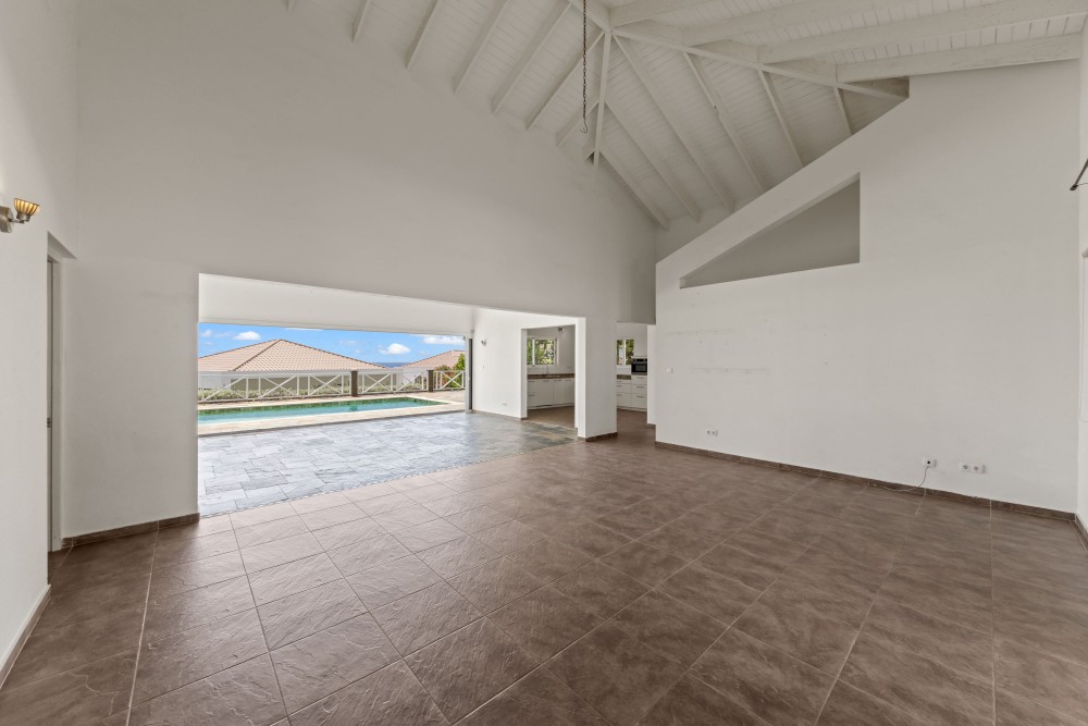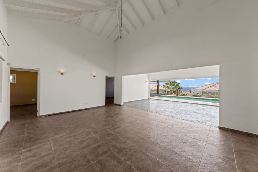 The villa is solidly built and features an impressive entrance, a wrap-around gallery, a carport with parking for two large vehicles, and a lush, mature garden.Upon entering, you are welcomed into the bright living and dining area with a stunning view over the pool and the Caribbean Sea. The high ceiling enhances the spacious feel of the villa. Thanks to the large sliding doors, the indoor and outdoor areas merge into one harmonious living space.The pool is located on the covered porch, offering the perfect spot to relax and enjoy Caribbean outdoor living with breathtaking sea views.Adjacent to the living area are three bedrooms. The master suite features a private en-suite bathroom and a spacious walk-in closet. The two well-sized guest bedrooms share a full bathroom.The kitchen is equipped with all necessary built-in appliances. Next to it, a practical pantry offers connections for a washer and dryer as well as additional storage space. A side door connects directly to the carport, ideal for unloading groceries.With a bit of Tender Love and Care, this well-built villa, its functional layout, and prime location within the coveted B-section of Blue Bay Golf & Beach Resort can easily be transformed into a beautiful permanent or vacation home.Listing agents Derek and Marcel are happy to provide additional information or schedule a viewing.
