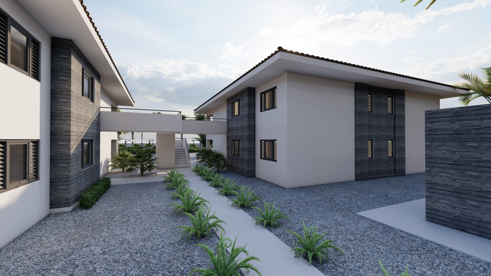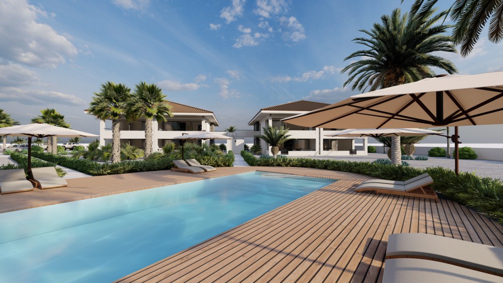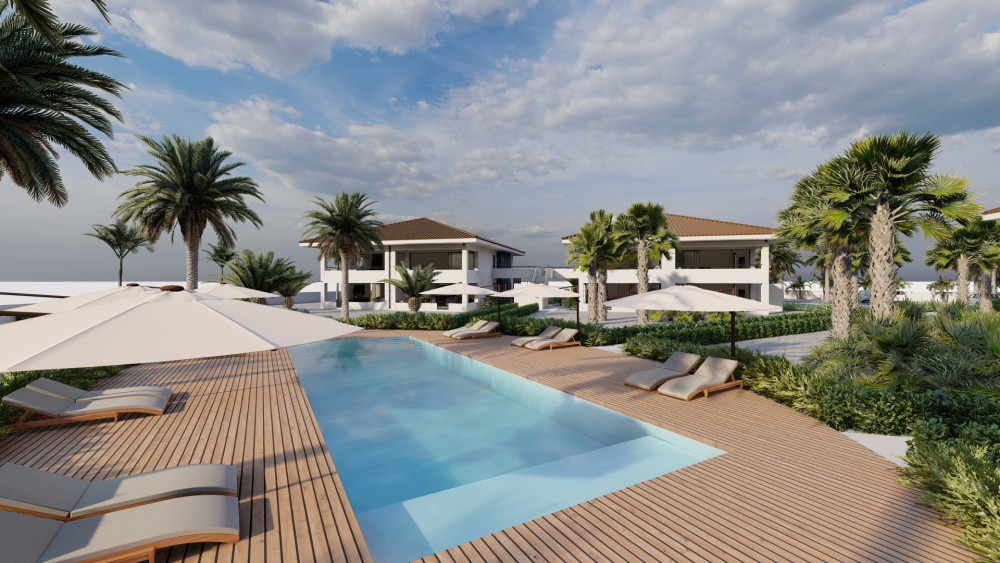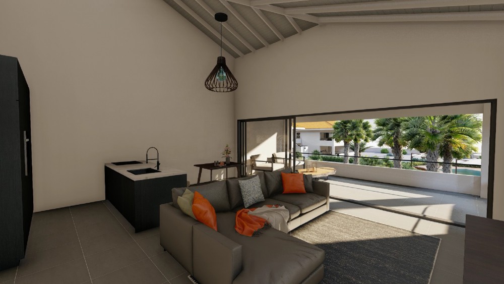 These new apartments are being realized in the inner heart of the J-section at the Blue Bay Golf and Beach Resort. This project is characterized by the spacious layout and the richly planted tropical garden. The spectacular pool with tropical hardwood pool deck is the centerpiece of this project.The design is by the well-known architect Henk Bolivar of the office: Bo! Arkitektura. Much attention has been paid to luxury and finish and high-quality materials are used. For the ultimate Caribbean feeling, each apartment is situated overlooking the swimming pool and tropical garden.This ground floor apartment has a spacious living room, divided into a dining and sitting area, an extra room with space for a desk or television corner. The large open kitchen has a breakfast bar and is connected to the living area. The master bedroom has its own walk-in closet and en-suite bathroom. The second bedroom also features an en-suite bathroom.The kitchen is often the heart of the home, the place to enjoy a good glass of wine, a dinner prepared with love and good conversations with friends and family. That’s why your European-designed kitchen with high-quality built-in appliances and modern materials makes this part of your home extra inspiring.The bedrooms are equipped with air conditioning for an optimal sleeping climate. The two luxurious bathrooms are equipped with high-quality products. Experience the sensation of rain showers that refresh and relax and the comfort of bathroom facilities of the highest quality, from top brands and selected with sustainability in mind.By fully opening the sliding doors, the porch and living room are connected as one spacious living environment. The porch covers the full width of the apartment and offers enough space for living and relaxing purposes. From the porch you can enjoy your large outdoor space and experience the good Caribbean outdoor life.All apartments have their own external storage room, located next to the car park. Each apartment has two parking spaces. All apartments also have an (internal) laundry room with sufficient space for washing machines and storage.Expect nothing but the best in this apartment. Now and in the future. Therefore, used materials are chosen for their visual appeal, but also for their durable quality. On the outside, the excellent plasterwork and stone detail stand out. First-class floor and wall tiling on the inside. The greatest care and attention has been paid to the finish. The central location on the Blue Bay resort: 5 mins walk to the beach, 2 minutes to the tennis courts and the golf clubhouse is a major asset of this development.ContactAre you interested in investing in this property? Then contact the listing agent now!