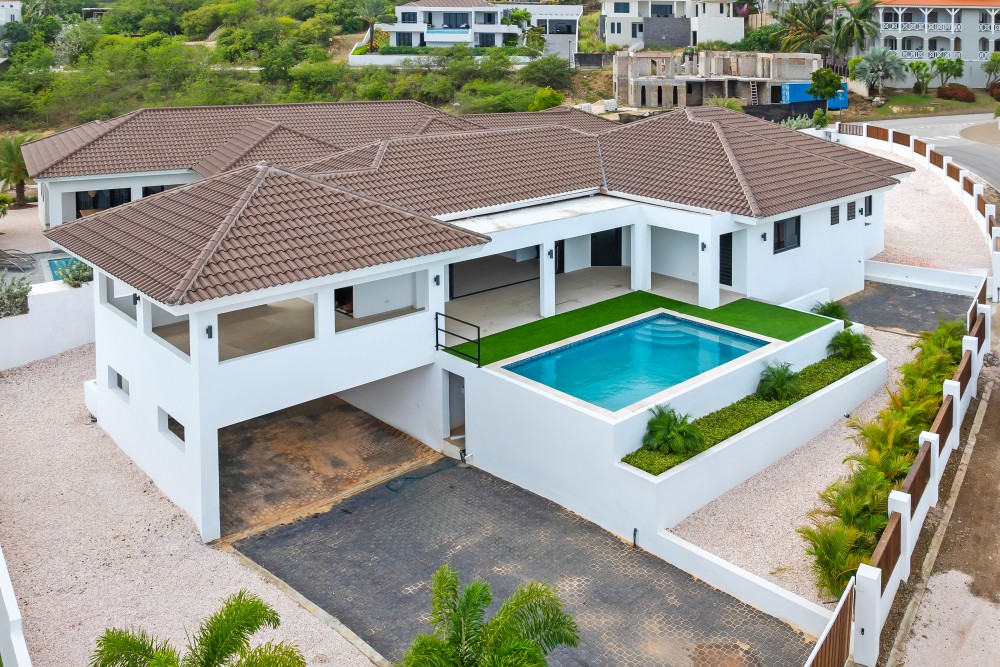 This property that is currently being constructed on the Blue Bay Resort, located on lot BD 21, offers a luxurious and spacious design, ideal for comfortable and stylish living in a tropical environment. Upon entering, you are welcomed by a spacious front porch, which provides access to the open living and dining room. This central space forms the heart of the home, where large windows provide plenty of natural light and a seamless transition to the outdoors. The living room flows seamlessly into the kitchen, which is equipped with modern amenities and ample storage space, making it a perfect place for culinary enthusiasts.The home features four spacious bedrooms, including a luxurious master bedroom with an en-suite bathroom and a walk-in closet. The other three bedrooms are also generously sized and share two well-appointed bathrooms, making this home ideal for families or guests. All bedrooms are designed with comfort and privacy in mind, and offer ample space for personal decoration.In addition, the home features practical spaces such as a utility room and a hallway that provides access to different parts of the home. This utility room is ideal for extra storage and household tasks, while the hallway allows for efficient flow through the home. Finally, the home offers several outdoor spaces, including a porch and a spacious garden, perfect for relaxing and entertaining. The design of the home combines modern architecture with the natural beauty of the surroundings, making it an excellent choice for those looking for a luxury home in an exclusive location such as Blue Bay Resort.Interested in scheduling a viewing? Contact the listing agent today!