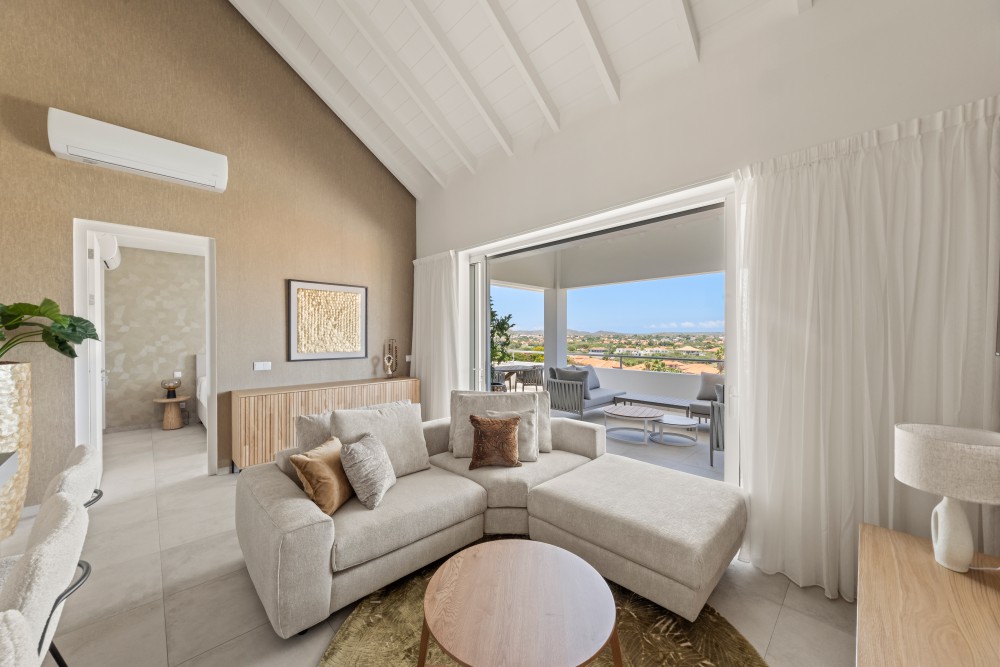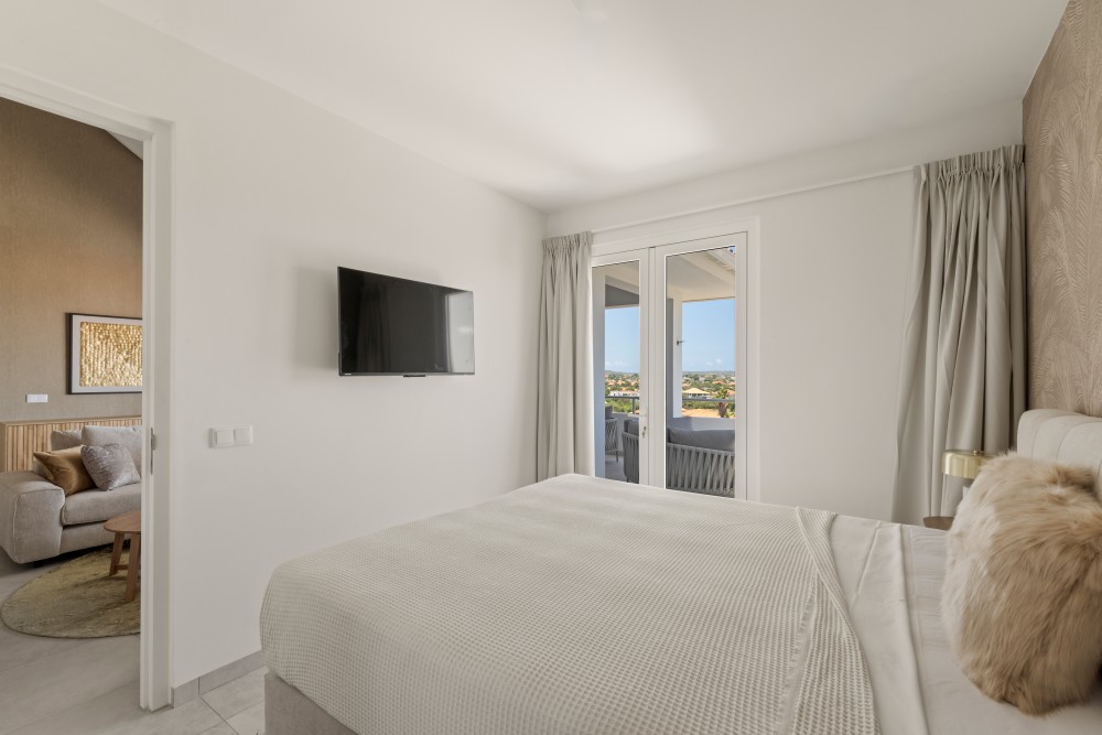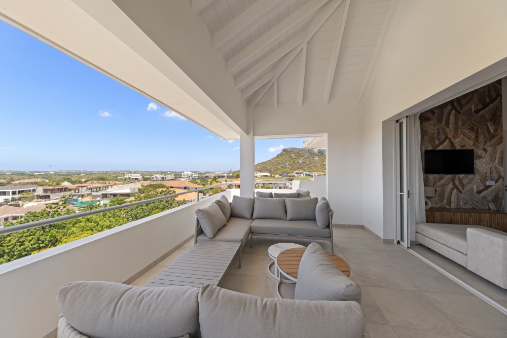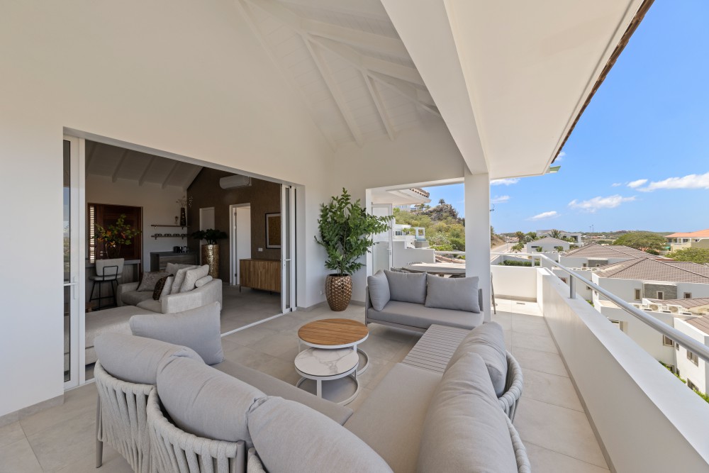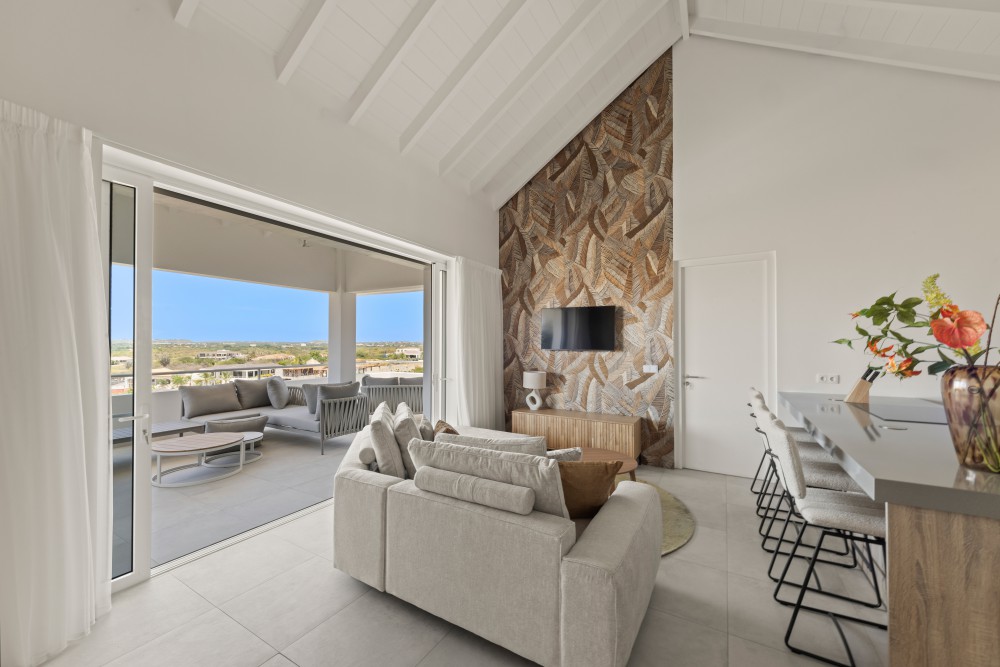 This beautiful newly built apartment is centrally located within the Blue Bay Golf & Beach Resort, just a 5-minute walk from Blue Bay Beach and the golf course. The project is new build and consists of 10 apartments and penthouses. It is characterized by its spacious layout, lushly planted tropical gardens, and a spectacular swimming pool.The entire project will be delivered turnkey, including professional landscaping and the completed swimming pool, allowing you to immediately enjoy a luxurious and carefree living stay.The penthouse apartment features two spacious bedrooms with French doors opening onto the large terrace. Each bedroom has an en-suite bathroom with modern European sanitary fittings, air conditioning, and built-in closets.The living room is spacious and bright, and there is a modern open kitchen with a cooking island. By opening the sliding doors, the large covered terrace and the living room seamlessly merge into one spacious living area. From the terrace, you can enjoy stunning views, a refreshing breeze, and maximum privacy due to the smart positioning of the buildings.Each apartment includes one designated parking space.The apartment is sold fully furnished, including a luxurious inventory, making it immediately move-in ready for private use or rental.In addition to being a wonderful place to live or to use as a holiday home in Curaçao, these apartments are also an excellent investment opportunity. Short-term / vacation rentals are allowed, and the growing demand for tourist accommodations, combined with increasing nightly rates and occupancy levels, ensures an attractive return on investment through vacation rentals.The design is by renowned architect Henk Bolivar of the firm Bo! Arkitektura. Great attention is paid to luxury and finishing, using high-quality materials throughout.Don’t wait too long, contact Nick today for more information!House no.: hs2540The images used are for illustrative purposes only and no rights can be derived from them.