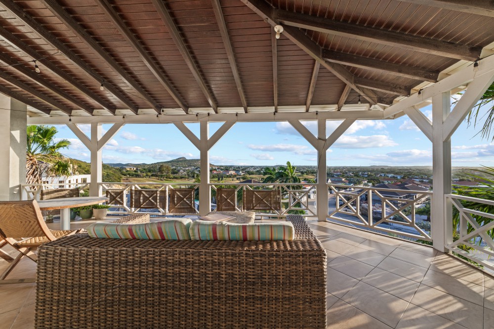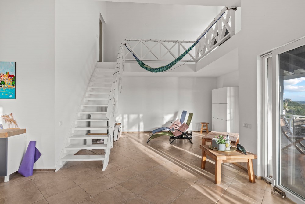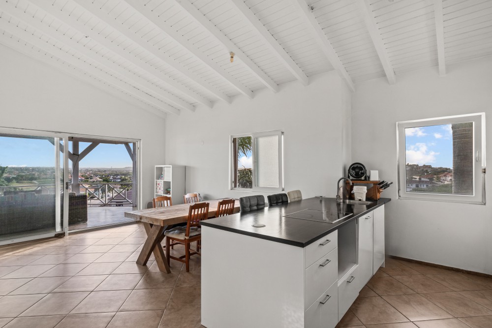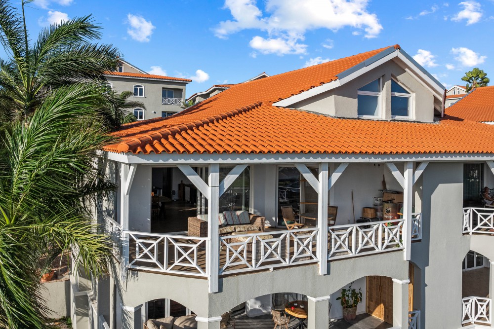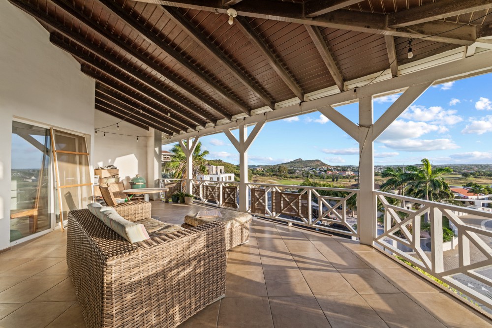 At Residence Le Bleu, this generous penthouse is now available. From the apartment, you have a beautiful view of the golf course and a large part of the island. Thanks to its elevated position, it benefits from a constant, refreshing breeze. The apartment is currently rented long-term until May 2027.You enter the home via an exterior staircase. A spacious entrance leads into the bright and open living room. The high ceilings create a wonderfully airy and expansive feeling. At the back of the living room, you will find a luxurious semi-open kitchen with a combination microwave/oven and dishwasher. The living area is generously designed with two large sliding doors opening onto a wide, covered terrace, offering stunning views over the tropical gardens and the sea. When both sliding doors are fully opened, the porch and living room blend into one large indoor–outdoor living space.From the living room, a staircase leads to the upper level, where a loft is located—an ideal spot for a home office. On this floor, you will also find a bedroom with an en-suite bathroom.Back on the ground floor, you will find a spacious master bedroom with an en-suite bathroom. The third bedroom also has its own bathroom and direct access to a private balcony.A separate storage closet in the hallway offers space for a washer and dryer. All rooms are pre-wired for television, telephone, and internet. The numerous power outlets support 220V equipment. All windows and doors are made of durable, low-maintenance German-manufactured PVC with tilt-and-turn functionality. Each room is equipped with an air conditioner, and combined with wall insulation, this can provide up to 30% savings on electricity consumption for cooling.Residents of Residence Le Bleu have access to the communal swimming pool with palapa and artificial grass area, as well as a Blue Bay beach pass granting entry to the beach club. Each apartment also includes two private parking spaces.Residence Le Bleu consists of 32 apartments divided over eight classic Caribbean-style buildings. Each building contains two ground-floor apartments and two penthouses.Residence Le Bleu is located at the top of a hill in Blue Bay Heights, the most exclusive section of Blue Bay Golf & Beach Resort. The apartments and penthouses are surrounded by lush landscaped gardens with mature palm trees. The elevated position provides optimal exposure to the cooling trade winds.To ensure a peaceful living environment, short-term tourist rentals are not permitted. Homes in Residence Le Bleu are intended for owner occupancy or long-term rentals only.Residence Le Bleu has an excellent safety track record. Security is managed by the professional team at Blue Bay Golf & Beach Resort.All amenities are within easy reach. The resort itself offers a beautiful beach with crystal-clear water, a pool with a children’s area, the Azzuro restaurant, a bikini shop, dive shop, massage pavilion, tennis courts, and a gym.Nearby, you will also find a large supermarket, pharmacy, general practitioner, gas station, and several schools (from kindergarten to university level).The center of Willemstad, with its many attractions, is just a 10-minute drive away. Residence Le Bleu also serves as an ideal base for exploring Curaçao’s unspoiled west coast.Interested in living at Residence Le Bleu? Contact Rick Seisveld today!