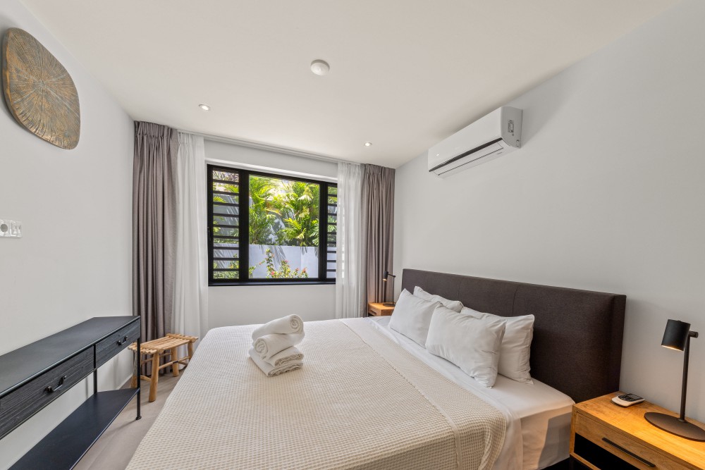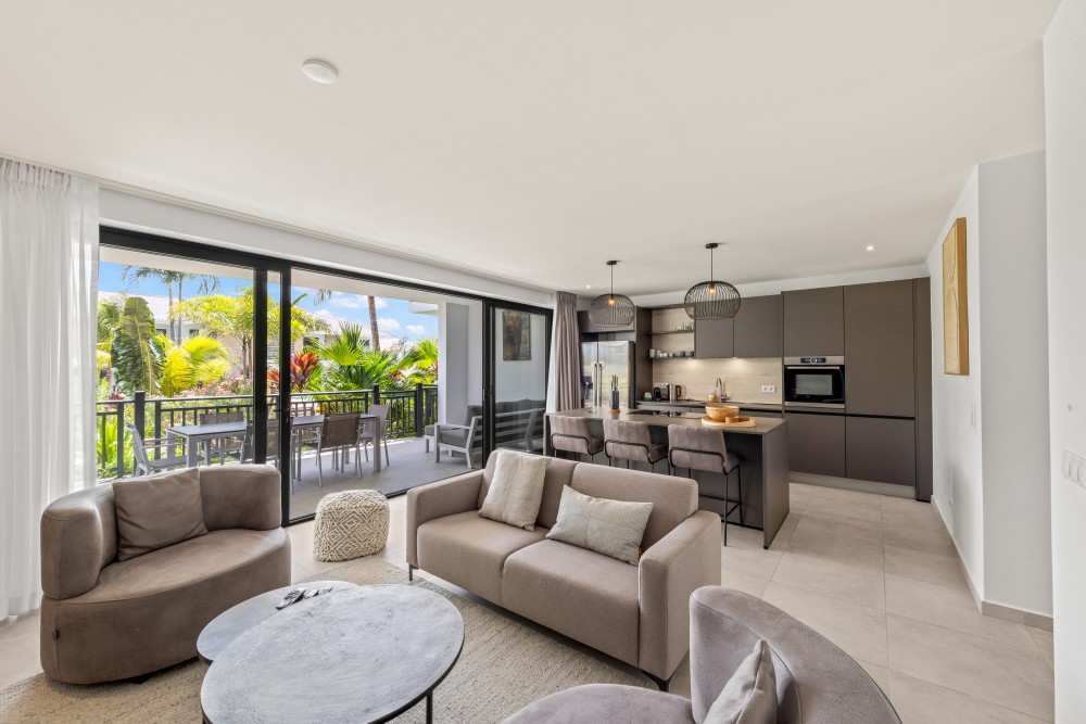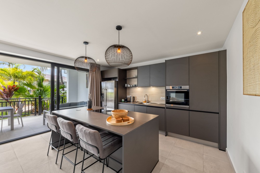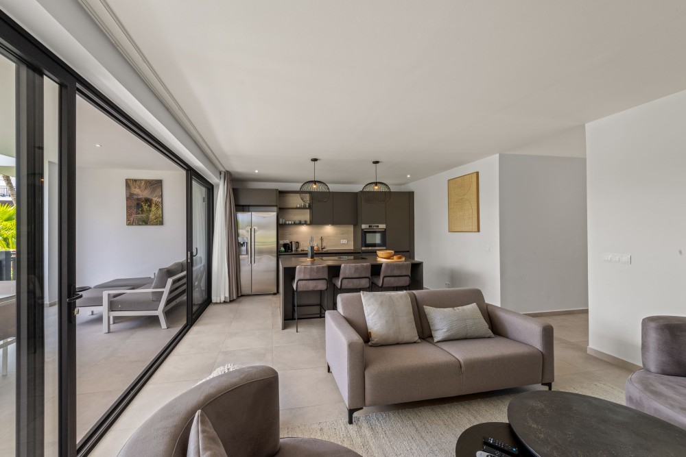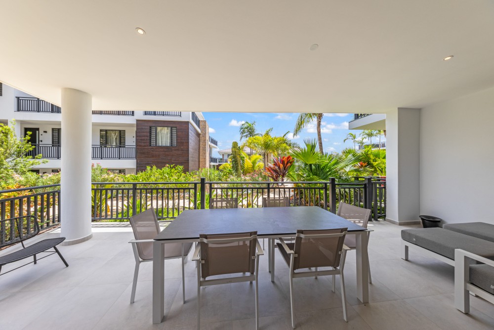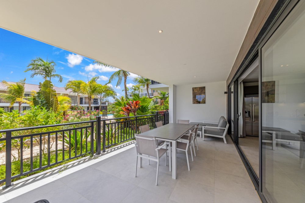 At Blue Bay Golf & Beach Resort, centrally located on Curaçao, you’ll find the new development project The Breeze. In this luxury complex, designed by renowned architect Henk Bolivar (Bo! Arkitektura), great attention has been paid to comfort, aesthetics, and sustainability. The result is an elegant living environment with high-quality materials, tropical gardens, and two stunning infinity pools on both the ground floor and upper level.This specific apartment is located on the ground floor and enjoys a favorable corner position surrounded by lush greenery. This ensures maximum privacy and tranquility — perfect for outdoor relaxation throughout all seasons.The apartment is being sold fully furnished. The carefully selected furnishings are stylish and of excellent quality. Everything is in place to move in or rent out immediately. The décor creates a warm, inviting ambiance where nothing is lacking.Inside, the property offers a bright, open-plan living area seamlessly connected to a modern kitchen featuring a cooking island, built-in appliances, and an American fridge with water and ice dispenser. Sliding doors open onto the spacious covered terrace, naturally extending the living space and inviting you to enjoy the ultimate Caribbean indoor-outdoor lifestyle.The two generously sized bedrooms each have their own en-suite bathroom, complete with walk-in shower, wall-hung toilet, vanity unit, and modern European sanitary ware. Energy-efficient air conditioning in all living and sleeping areas ensures year-round comfort. Additionally, there is a convenient internal storage and laundry room.In addition to being an ideal family home or second residence, these Breeze apartments also offer excellent investment opportunities. Unlike many other projects at Blue Bay, short-term vacation rentals are allowed, enabling you to benefit from increasing demand, higher nightly rates, and strong occupancy levels, resulting in an attractive return on investment.For more information, a viewing, or questions regarding the purchase of this beautiful apartment, please contact Derek Plagman at +5999 670 3381