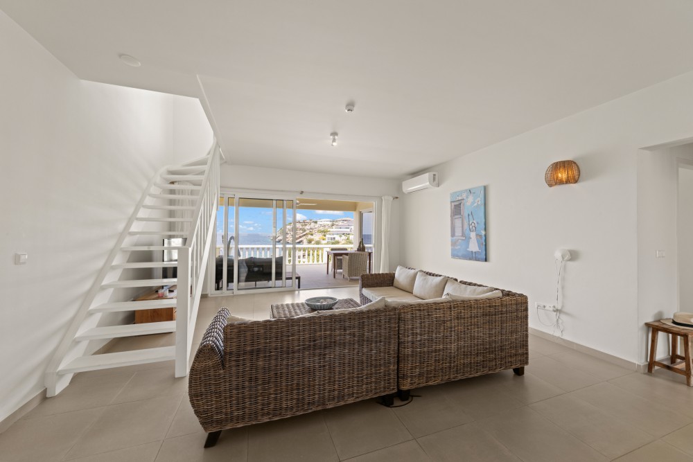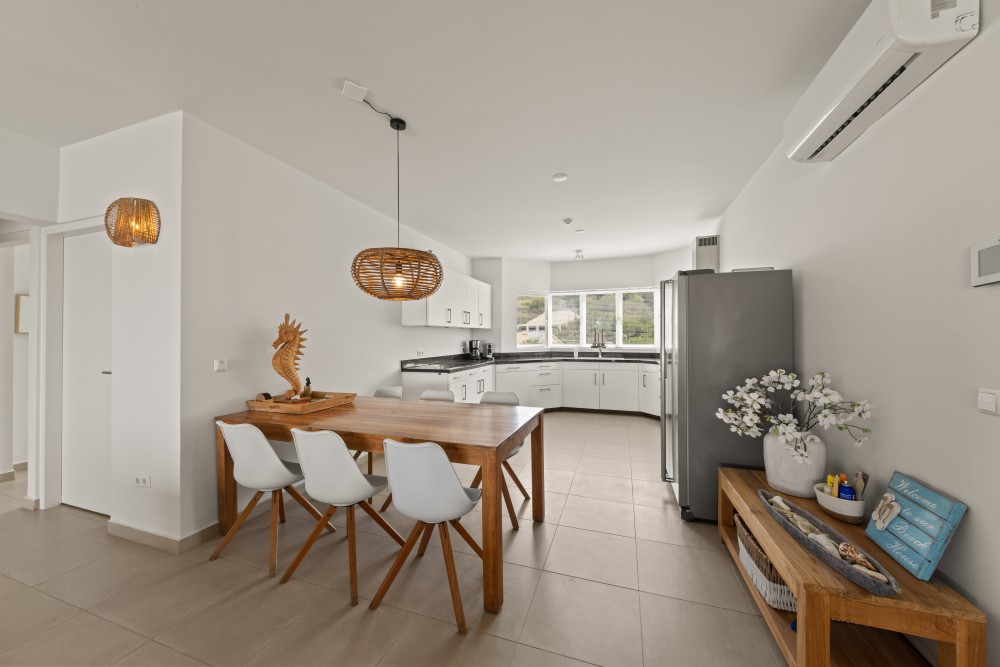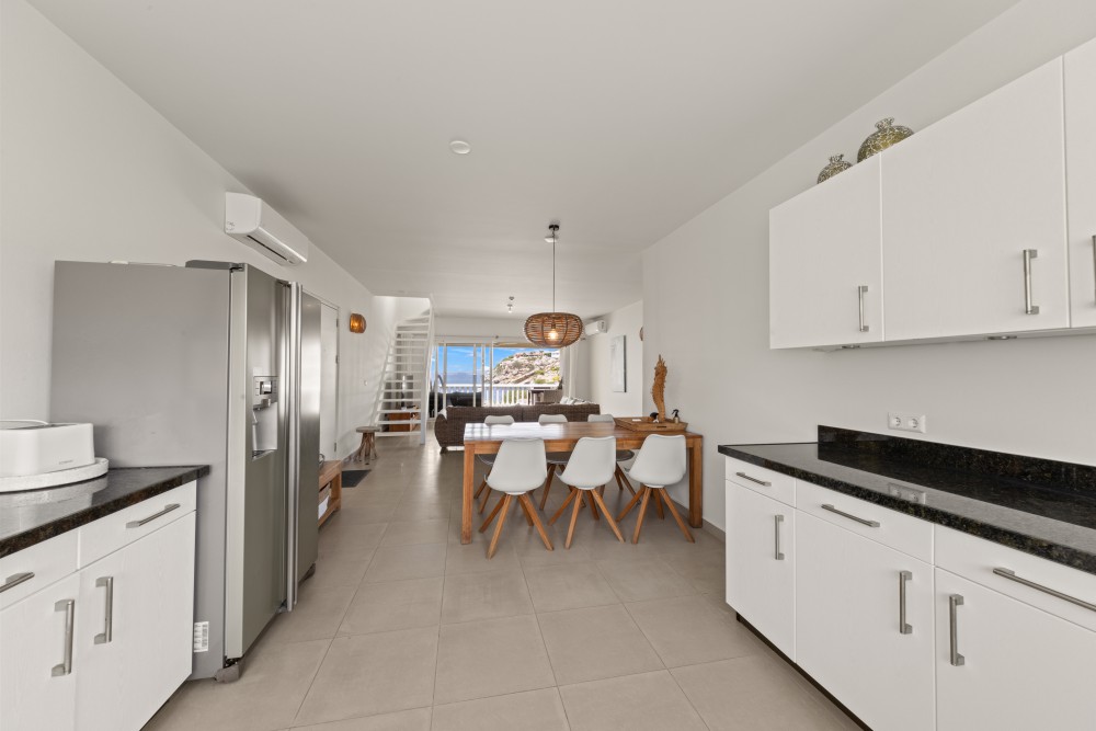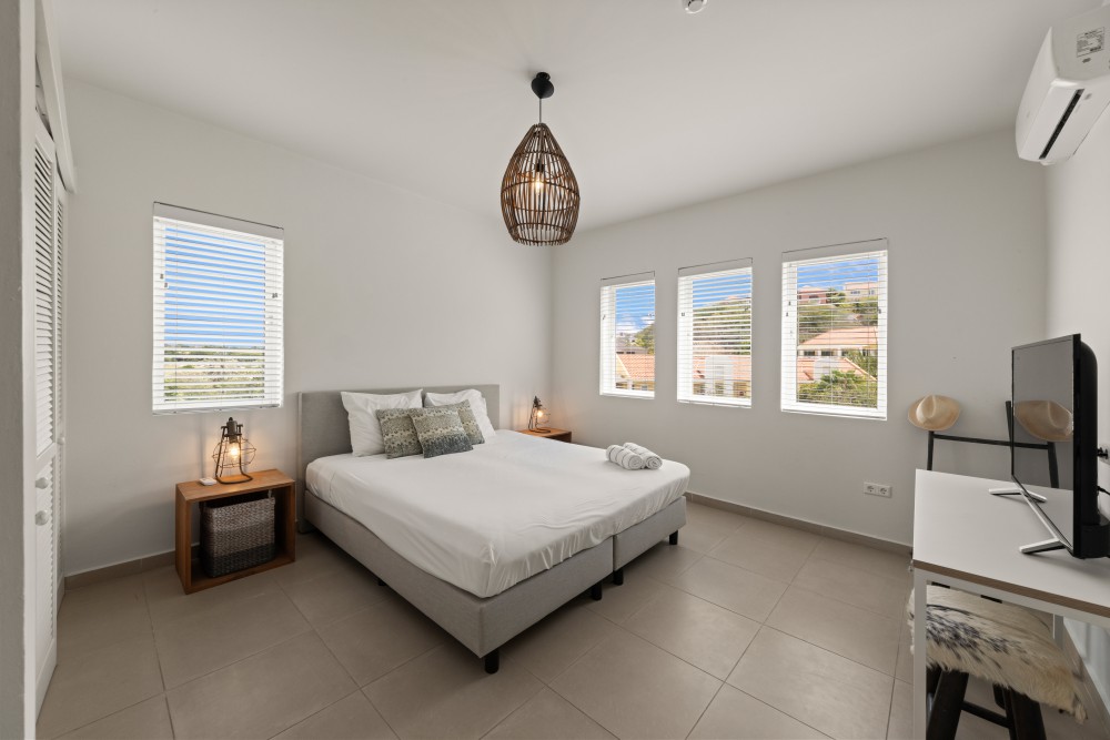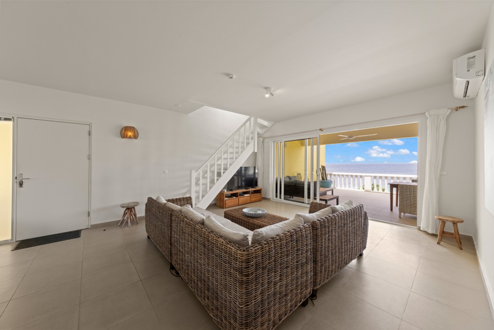 This unique and spacious 3-bedroom penthouse is located on the fourth floor of the Blue Emerald building. Thanks to its elevated position, you enjoy a refreshing breeze and stunning views over the Blue Bay resort as well as the Caribbean Sea.The complex is situated directly next to Blue Bay Beach. In addition to the beach, residents can cool off in the private swimming pool of the Blue Emerald complex. The penthouse accommodates up to 6 guests.The apartment features a bright living room and kitchen that flow seamlessly onto the large balcony, the perfect place to enjoy both sun and shade. The fully equipped kitchen includes everything you need, such as complete inventory, dishwasher, combi-oven, ceramic cooktop, and extractor hood. The living area offers a comfortable TV corner where you can relax in the air-conditioning while watching your favorite series or sports.A staircase in the living room leads to the master bedroom. This room offers a queen-size bed and a large private bathroom featuring a bathtub with Blue Bay views, a shower, toilet, and double vanity. The master bedroom also has exclusive access to a private balcony with breathtaking sea views.The other two bedrooms are equal in size and both feature queen-size beds. One of these bedrooms has sliding doors that open directly onto the main terrace with sea view. Each bedroom has its own spacious bathroom with bathtub, shower, toilet, and sink.The property is offered fully furnished, including linens, TVs, tableware, glassware, and more. The high-quality modern furnishings make this penthouse ideal for vacation rentals.There are various usage options for the apartment: • Short-term rental via platforms like HomeAway, Airbnb, or Micazu • Permanent residence • Long-term rentalThe Homeowners’ Association (HOA) of Blue Emerald is active and financially healthy. Both you and your guests can enjoy all the amenities expected from a luxury vacation resort like Blue Bay: a beautiful swimming pool, tennis courts, an 18-hole golf course, several restaurants, a dive school, walking and cycling paths, and of course a spectacular white sandy beach, all within walking distance.