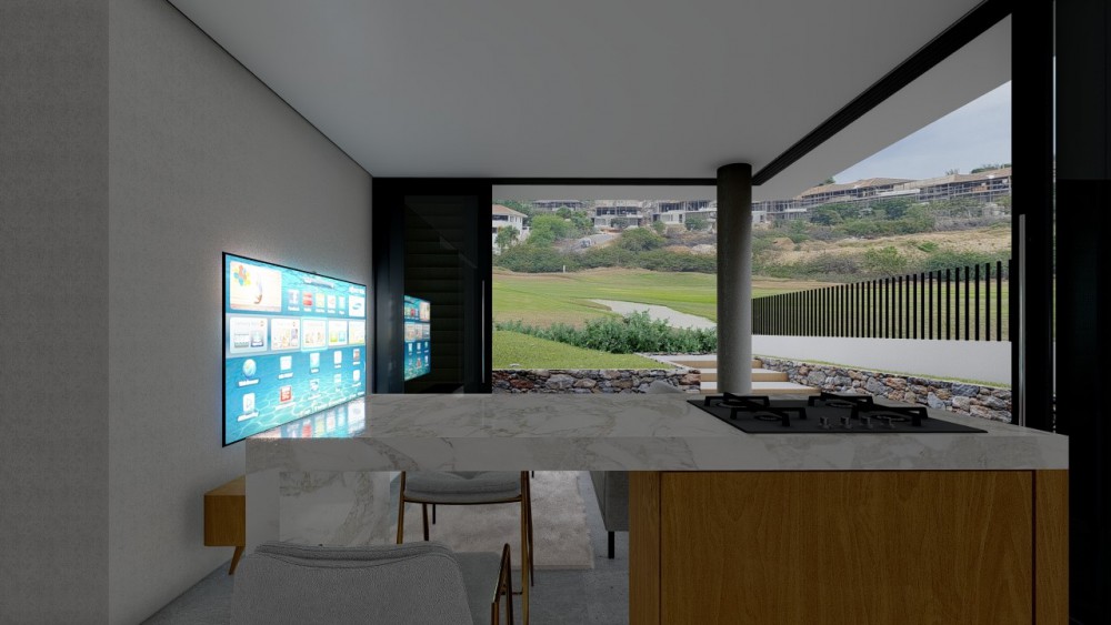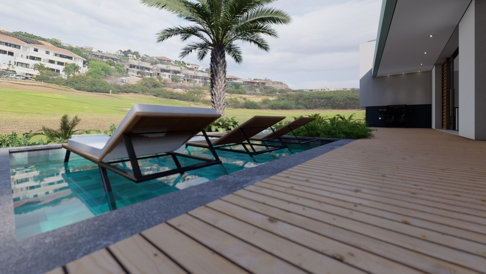Upon entering, you are welcomed by an imposing mezzanine, which embraces the space with an abundance of natural light and an elegant sense of openness. From this special mezzanine, you can enjoy breathtaking views over the expansive living room, the beautiful swimming pool and the surrounding golf course. Here you will find three luxurious bedrooms, each with its own refined bathroom with a spacious walk-in shower, a stylish washbasin and a toilet. To the left of the mezzanine you will find a tastefully decorated guest toilet, as well as access to the generous master bedroom.The master bedroom is a true oasis of luxury and sophistication. To the left, you will find a luxurious bathroom equipped with a stylish freestanding bathtub, a double glass walk-in shower, a chic washbasin and a discreetly placed toilet. To the right is a generous walk-in wardrobe, offering an abundance of space for your wardrobe. Between the bathroom and the walk-in closet, an elegant staircase leads you to the sleeping area, which is embellished with a sliding glass door and offers enchanting views over the golf course.An elegant staircase from the mezzanine leads to the atmospheric living room, which offers breathtaking views over the picturesque golf course. The luxury kitchen, a paragon of sophistication and functionality, features a stunning cooking island that also serves as a stylish breakfast bar. This kitchen is equipped with state-of-the-art amenities, including an induction hob with integrated extractor fan, a high-quality dishwasher, an oven, a microwave and a state-of-the-art fridge/freezer.From the living room, you step directly onto the terrace, where breathtaking views over the golf course welcome you. The inviting swimming pool entices you to take a refreshing dip, while the generous terrace provides the perfect setting to relax in luxury. Here you can enjoy the serene surroundings and sophisticated outdoor living in peace. In addition, the terrace also offers the convenience of a guest toilet.A staircase from the living room leads to the flat, which exudes the same sophistication and allure as the rest of the house. Here you will find a luxurious kitchen with a stylish cooking island that doubles as a breakfast bar, a cosy sitting area that opens onto a private terrace, and a bedroom with an en suite bathroom for an intimate and comfortable living environment.The exclusive location of this property offers the possibility of holiday rentals, allowing you to realise attractive returns.For more information or to schedule a viewing of the plot, please contact the relevant estate agent.Huis nr:2851