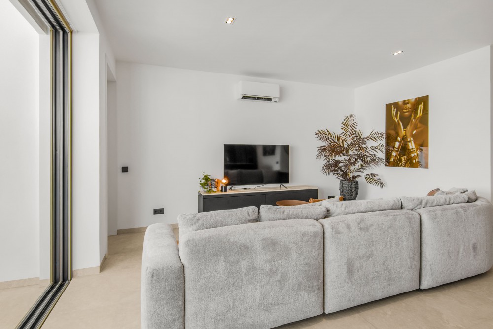The Cape is a boutique collection of exclusive penthouse and apartment residences, each offering unobstructed views. The development consists of two buildings with a total of five apartments and three penthouses. Designed in collaboration with architect Henk Bolivar of Bo! Arkitektura and ILB interior architects, The Cape combines modern elegance with traditional Caribbean character, using only high-quality materials throughout.The apartment’s layout is designed to seamlessly blend indoor and outdoor living. The large sliding doors retract fully into the side walls, opening the home to breathtaking panoramic views of the golf course and Caribbean Sea. This architectural feature creates an impressive open living environment that enhances natural airflow and strengthens the connection with the surrounding nature.The spacious central living area includes an open-concept kitchen with a cooking island, high-end European appliances, and a seamless stone countertop.Both the master and guest bedrooms are fully tiled and equipped with ensuite bathrooms featuring rain showers, natural stone countertops, and electric bidet toilets. The master suite includes a fully customized walk-in closet, while the guest bedroom offers a custom built-in wardrobe.The private outdoor space includes a covered terrace with room for both a dining area and a lounge set. The infinity pool offers the perfect size and depth for a refreshing dip or entertaining friends—all while enjoying the stunning views.A central hallway provides access to a guest toilet and an internal storage room with a washer and dryer. The apartment also includes two private parking spaces and an external storage unit ideal for tools, equipment or seasonal items.High-end finishes throughout the residence include custom ILB cabinetry, Duravit sanitary ware, matte gold-look bathroom fixtures, energy-efficient Daikin inverter air conditioning units, Niko electrical switches, powder-coated aluminum window frames and sliding doors, and large 120×120 cm ceramic tiles both indoors and on the terrace.Whether you are seeking a permanent home or a premium property with outstanding short-term or long-term rental potential, this apartment offers complete flexibility.An additional advantage is that no transfer tax is due upon acquisition, as the unit is owned by an SPF. Furthermore, under the current fiscal legislation, rental income may in principle remain tax-exempt.Interested in viewing? Contact the listing agent today!